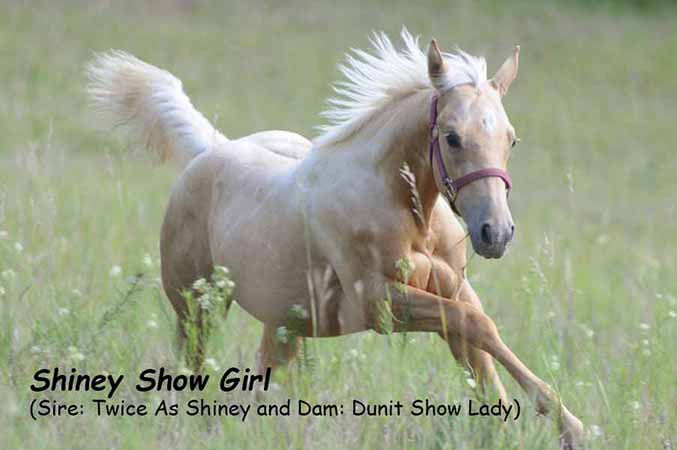 Stallion bloodlines include: gorgeous bay stallion, Spooks Golden Gun, out of World Champion, Spooks Gotta Gun, buckskin stallion, Shineys Fancy Jac, out of World Champion Twice As Shiney, Red Dun Stallion, Colonels Gun Master, out of Gunners Indian (Son of World Champion "Gunner" - Colonels Smoking Gun), Sorrell Stallion, Dashs Famous Fortune, out of Dash Ta Fame, all time leading sire of barrel racers.